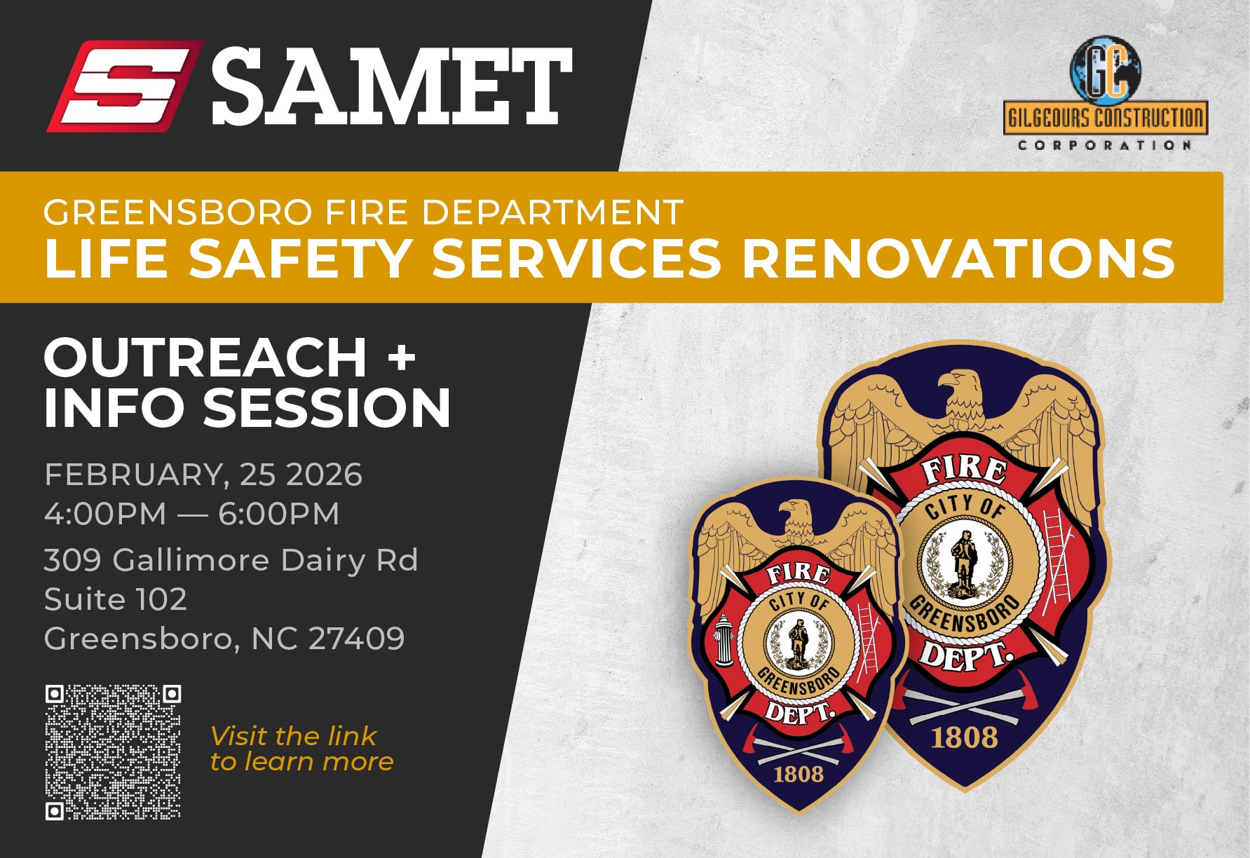 Join us for an outreach and information session for Greensboro Fire Department's Life Safety Services Renovations. Visit the website link below to register.
