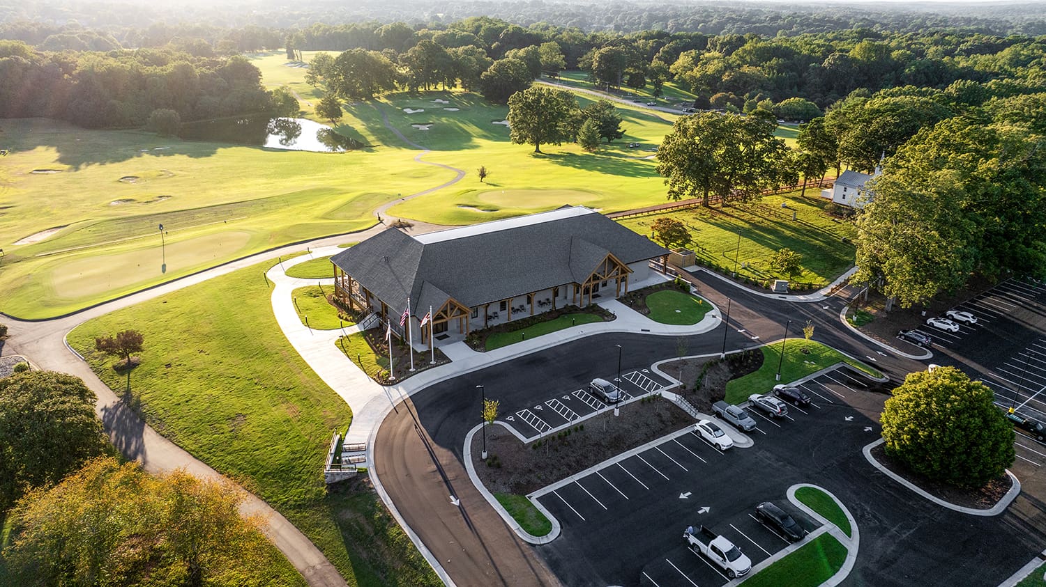 The new clubhouse replaces the original clubhouse that opened in 1973. Designed to be a modern facility emphasizing simplicity and functionality, the new clubhouse aims to provide an enhanced experience for golf enthusiasts and event space customers alike phases within the active park.