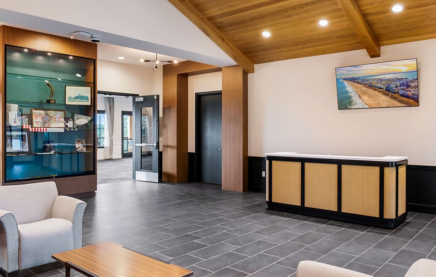 CM@RiskSet amidst a picturesque park and golf range, this brand-new 20,000 SF clubhouse features a walk-out patio on the lower level adjacent to the golf course and dining areas, meeting rooms, a catering kitchen, a staging kitchen, offices, and a golf shop on the upper level.